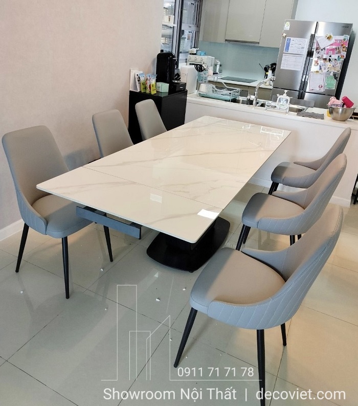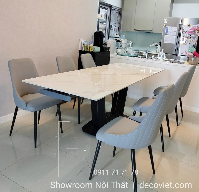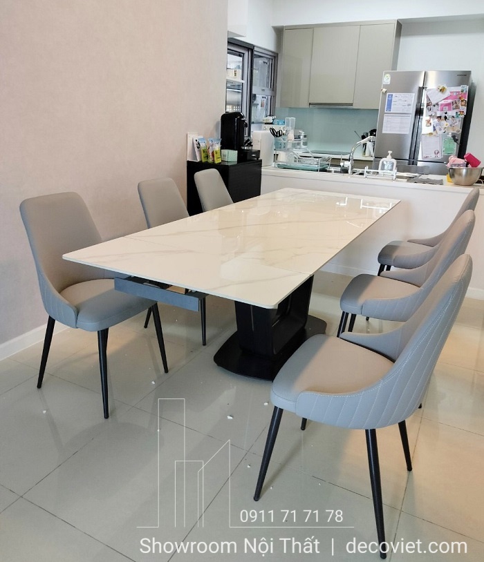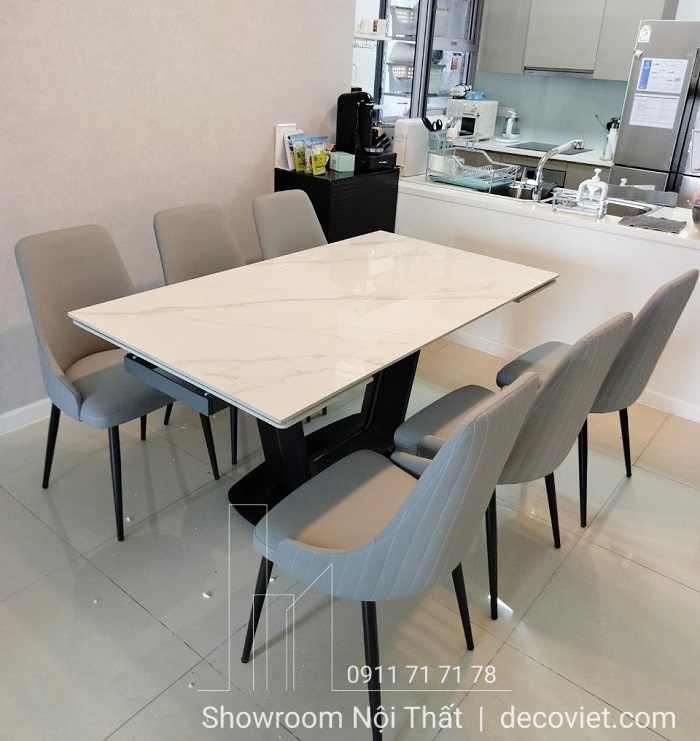 Nắm bắt được xu hướng thiết kế và là đơn vi tiên phong tại thị trường TPHCM, Biên Hòa, Bình Dương. Nội thất DecoViet vừa cho ra mắt bộ Bàn Ăn Thông Minh Gấp Gọn 6 Ghế 1596S với thiết kế phù hợp cho bất kỳ không gian phòng ăn hiện đại nào. Với cơ chế kéo dài và thu gọn linh hoạt, bàn ăn thông minh mặt đá mang đến sự sang trọng trong thiết kế cũng như những trải nghiệm tuyệt vời trong quá trình sử dụng. Phần chân bàn ăn thông minh kéo dài bằng sắt sơn tĩnh điện bền đẹp, mặt đá ceramic sang trọng tinh tế chắc chắn sẽ làm hài lòng khách hàng.