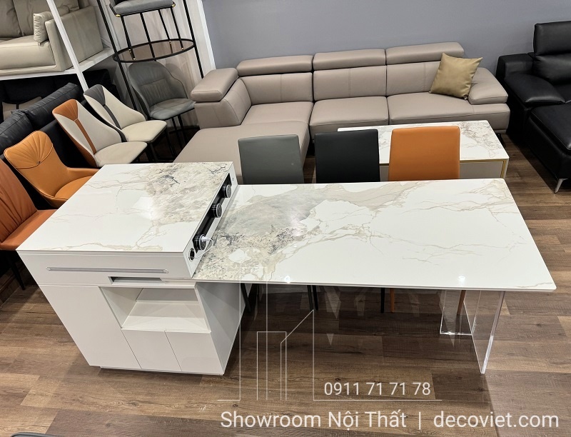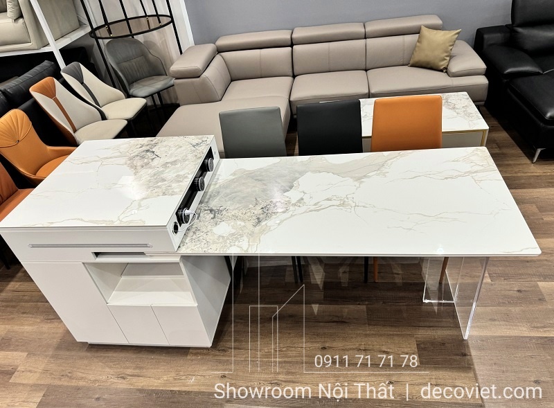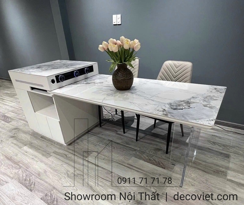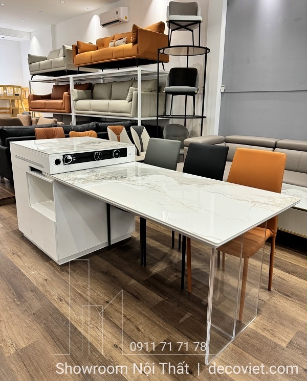 Bàn ăn thông minh kéo dài đang là một trong những sản phẩm nội thất hiện đại, sang trọng, tôn thêm vẻ đẹp cho ngôi nhà. Bàn Ăn Thông Minh Hiện Đại 1733S được xem là sản phẩm nội thất bếp hoàn hảo khi sở hữu khả năng biến đổi mặt bàn linh hoạt, có thể kéo dài và thu gọn mặt bàn tiện lợi, đáp ứng nhu cầu sử dụng cho 4 - 8 ghế ăn. Ngoài ra, thiết kế bàn ăn thông minh mở rộng như một quầy đảo bếp đẹp mắt, có độ bền bỉ lâu dài, giá thành hợp lý. Đây chính là những lý do mà mỗi gia đình đều nên sở hữu bộ bàn ăn thông minh mặt đá hoàn hảo này.