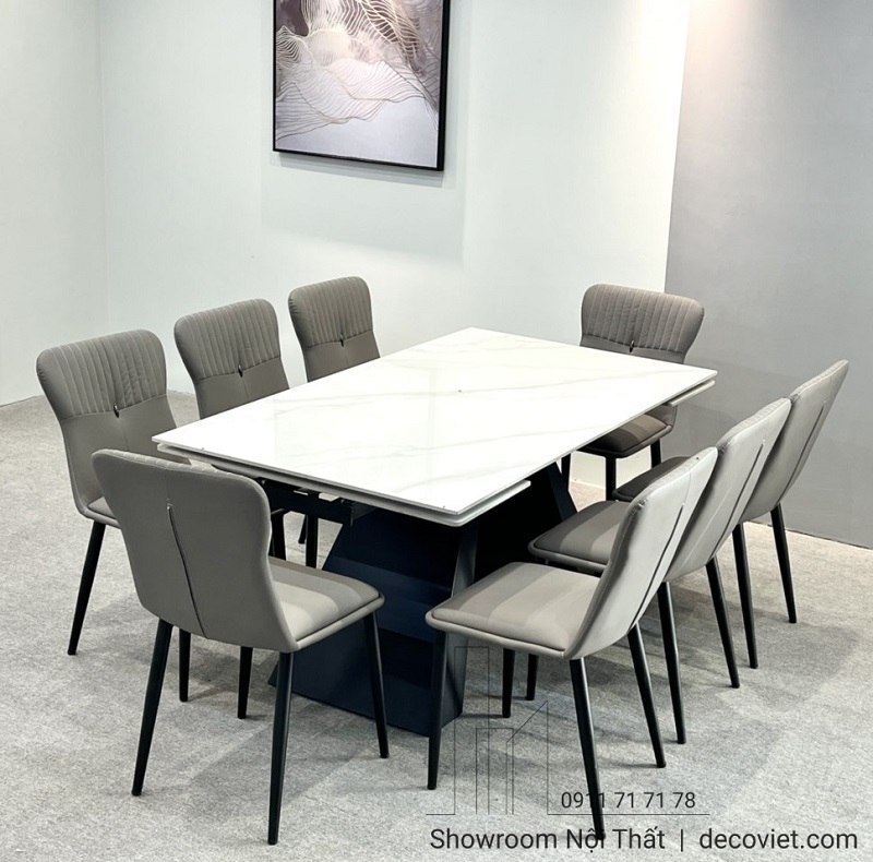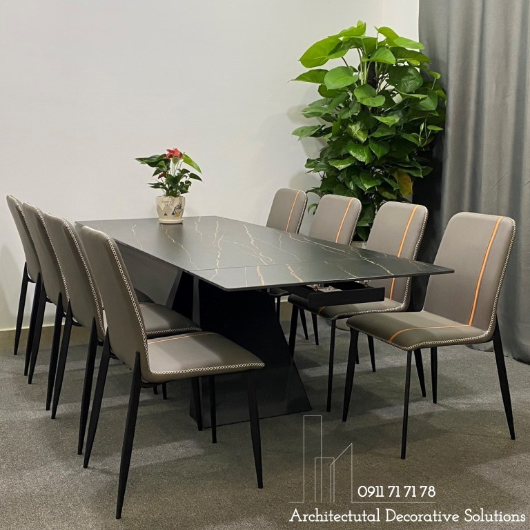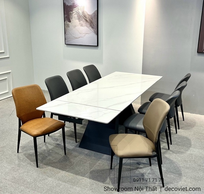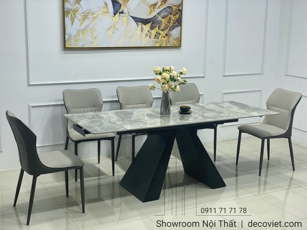 Mẫu bàn ăn thông minh mặt đá này được yêu thích bởi khả năng trượt mở rộng, kéo dài 2 đầu khi cần sử dụng giúp tăng diện tích mặt bàn đến 2m3, đáp ứng nhu cầu chỗ ngồi từ 6 - 10 ghế ăn. Khung chân sắt chữ A chắc chắn của Bàn Ăn Thông Minh Kéo Dài 657S cũng là một điểm nhấn nổi bật góp phần tăng thêm vẻ đẹp hiện đại, sang trọng cho mẫu bàn ăn kéo dài thông minh này.