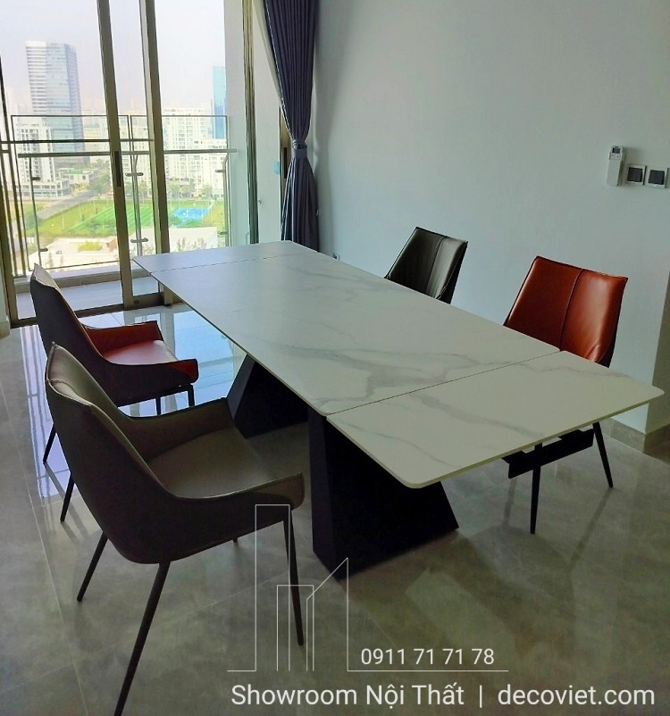 Nắm bắt được xu hướng thiết kế và là đơn vi tiên phong tại thị trường TPHCM, Biên Hòa, Bình Dương. Nội thất DecoViet vừa cho ra mắt Bộ Bàn Ăn Thông Minh 1623S với thiết kế phù hợp cho bất kỳ không gian phòng ăn hiện đại nào. Với cơ chế kéo dài và thu gọn linh hoạt, bàn ăn thông minh mặt đá mang đến sự sang trọng trong thiết kế cũng như những trải nghiệm tuyệt vời trong quá trình sử dụng. Phần chân bàn ăn thông minh kéo dài bằng sắt sơn tĩnh điện bền đẹp, mặt đá ceramic sang trọng tinh tế chắc chắn sẽ làm hài lòng khách hàng.
