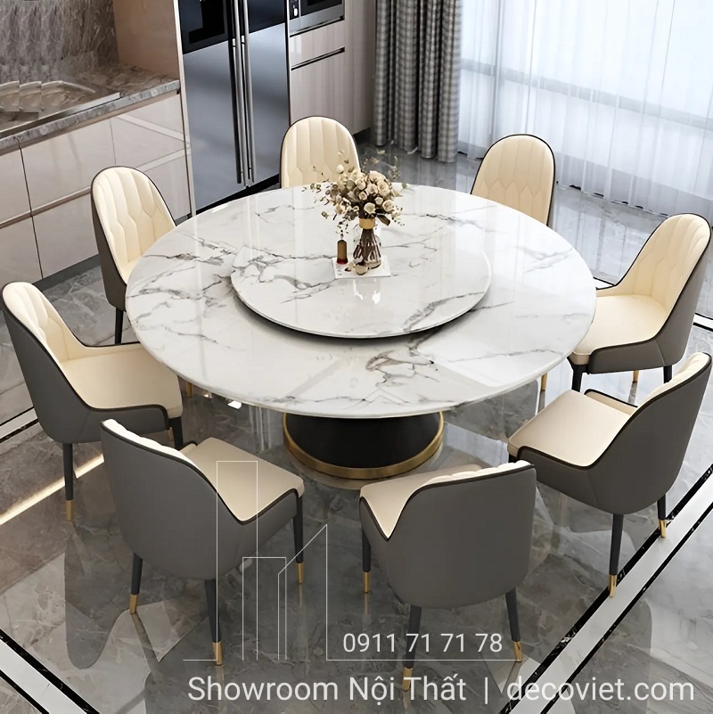 Tại DecoViet có nhiều mẫu mã bàn ăn tròn đẹp 4, 6, 8, 10, 12, 16 ghế được cập nhật theo xu hướng mới nhất thị trường. Hãy đến ngay với showroom của chúng tôi để trải nghiệm trực tiếp sản phẩm Bộ Bàn Ăn Tròn Xoay 8 Ghế 1730S cùng như những mẫu bàn tròn ăn cơm đẹp với giá thành ưu đãi nhất. Hoặc liên hệ ngay với DecoViet theo Hotline 0911 71 71 78 để chúng tôi có thể giúp bạn chọn cho gia đình mình bộ bàn ăn phù hợp nhất!