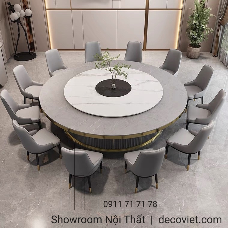 Nếu bạn đang tìm địa chỉ cửa hàng có nhiều mẫu bàn ăn tròn đẹp 4, 6, 8, 10, 12, 16 ghế thì hãy đến ngay với Nội Thất DecoViet để tham khảo những bộ bàn ăn tròn xoay có sẵn tại showroom. Bên cạnh trải nghiệm trực tiếp sản phẩm Bàn Ăn Tròn 12 Người Hiện Đại 1723S, tại DecoViet còn có hàng trăm mẫu bàn ăn tròn mặt đá nhập khẩu từ phong cách cổ điển đến hiện đại, được thiết kế theo xu hướng mới nhất trong năm. Liên hệ ngay với DecoViet để được tư vấn chọn cho gia đình mình bộ bàn ăn phù hợp nhất!