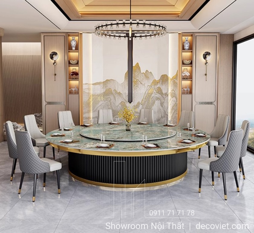 Là sản phẩm độc đáo trong bộ sưu tập bàn ghế ăn dành cho phòng ăn lớn, Bàn Ăn Tròn Xoay 20 Ghế 2130S là mẫu bàn ăn tròn đẹp hiện đại được yêu thích nhất tại DecoViet. Bàn ăn tròn mặt đá nhập khẩu nâng tầm đẳng cấp không gian sống, với thiết kế độc đáo cùng tone màu thời thượng dẫn đầu xu hướng nội thất thị trường hiện nay. Mẫu bàn ăn tròn mặt đá đẹp đa chức năng, phù hợp bày trí tại nhiều không gian từ căn bếp của nhà phố, biệt thự, villa, văn phòng đến phòng ăn VIP tại nhà hàng, khách sạn,... vô cùng đẹp mắt và hoàn hảo.