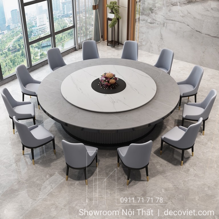 Bộ bàn ăn tròn mặt đá 12 ghế với thiết kế tinh tế và đường nét sang trọng, mỗi bữa ăn sẽ trở thành dịp đặc biệt trong không gian ấm cúng và gắn kết của gia đình. DecoViet xin giới thiệu đến bạn mẫu Bàn Tròn Mặt Đá 12 Ghế 2133S không chỉ mang lại sự thoải mái và tiện nghi, mà còn làm nổi bật gu thẩm mỹ tinh tế của gia chủ. Thiết kế mâm xoay thông minh giúp mọi thành viên dễ dàng tiếp cận món ăn, tạo ra không khí ấm cúng và thuận tiện. Kết hợp cùng mặt đá cao cấp và kiểu dáng hiện đại, bàn ăn tròn 12 ghế này nâng tầm phong cách phòng ăn, biến thành nơi mọi thành viên đều mong chờ trở về sau một ngày dài.