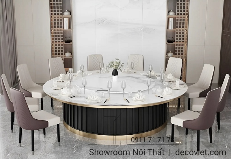 Nếu bạn đang tìm địa chỉ cửa hàng có nhiều mẫu bàn ăn tròn đẹp 4, 6, 8, 10, 12, 16 ghế thì hãy đến ngay với Nội Thất DecoViet để tham khảo những bộ bàn ăn tròn xoay có sẵn tại showroom. Bên cạnh trải nghiệm trực tiếp sản phẩm Bàn Tròn Xoay 12 Ghế Mặt Đá 1767S, tại DecoViet còn có hàng trăm mẫu bàn ăn tròn mặt đá nhập khẩu từ phong cách cổ điển đến hiện đại, được thiết kế theo xu hướng mới nhất trong năm. Liên hệ ngay với DecoViet để được tư vấn chọn cho gia đình mình bộ bàn ăn phù hợp nhất!