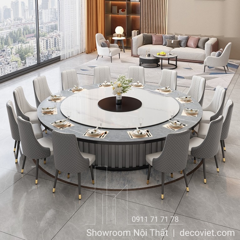 Bộ bàn ăn tròn mặt đá 14 ghế với thiết kế tinh tế và đường nét sang trọng, mỗi bữa ăn sẽ trở thành dịp đặc biệt trong không gian ấm cúng và gắn kết của gia đình. DecoViet xin giới thiệu đến bạn mẫu Bàn Tròn Xoay 14 Ghế Mặt Đá 2131S không chỉ mang lại sự thoải mái và tiện nghi, mà còn làm nổi bật gu thẩm mỹ tinh tế của gia chủ. Thiết kế mâm xoay thông minh giúp mọi thành viên dễ dàng tiếp cận món ăn, tạo ra không khí ấm cúng và thuận tiện. Kết hợp cùng mặt đá cao cấp và kiểu dáng hiện đại, bàn ăn tròn 14 ghế này nâng tầm phong cách phòng ăn, biến thành nơi mọi thành viên đều mong chờ trở về sau một ngày dài.