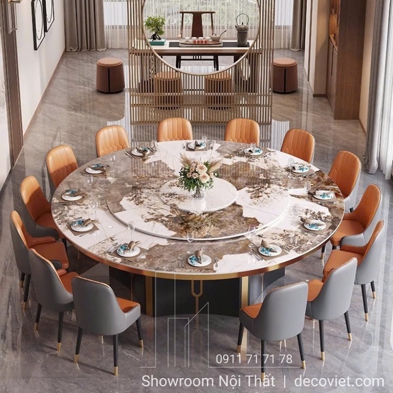 Là sản phẩm độc đáo trong bộ sưu tập bàn ghế ăn dành cho phòng ăn, phòng hội nghị lớn, Bàn Xoay Tròn Lớn Mặt Đá 16 Ghế 2124S là mẫu bàn ăn tròn đẹp hiện đại được yêu thích nhất tại DecoViet. Bàn ăn tròn mặt đá nhập khẩu nâng tầm đẳng cấp không gian sống, với thiết kế độc đáo cùng tone màu thời thượng dẫn đầu xu hướng nội thất thị trường hiện nay. Mẫu bàn ăn tròn 16 ghế đẹp đa chức năng, phù hợp bày trí tại nhiều không gian từ căn bếp của nhà phố, biệt thự, villa, văn phòng đến phòng ăn VIP tại nhà hàng, khách sạn, hội nghị,... vô cùng đẹp mắt và hoàn hảo.
