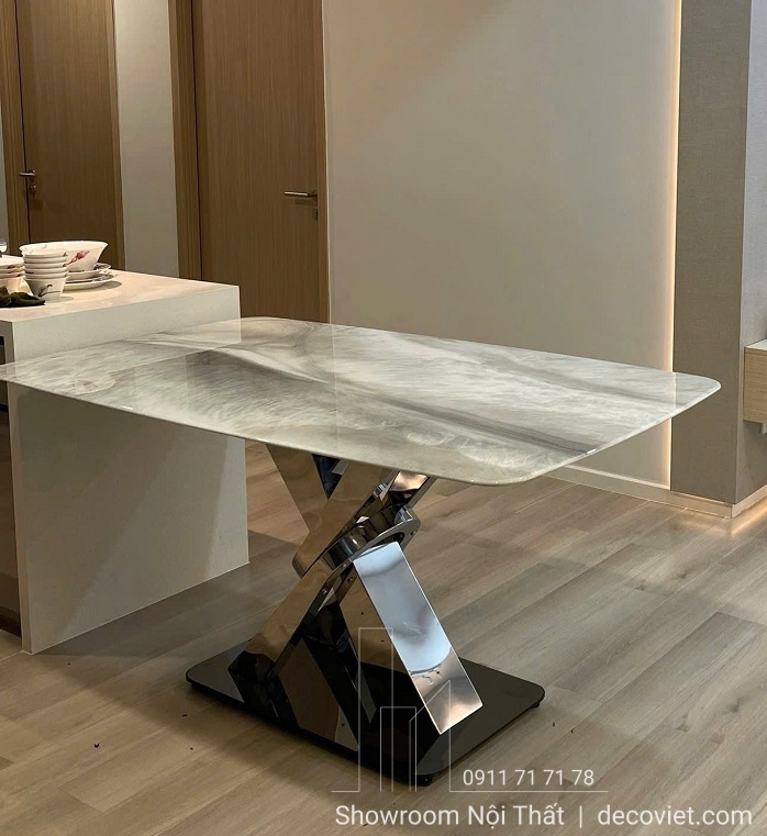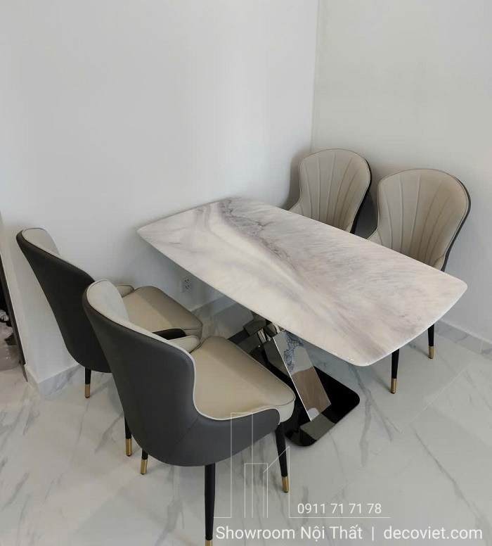 Khi phong cách sống không chỉ dừng lại ở tiện nghi mà còn cần sự thẩm mỹ tinh tế, Bàn Ăn 4 Ghế Chân Inox Hiện Đại 2727S chính là lựa chọn hoàn hảo để nâng tầm không gian phòng ăn. Với thiết kế ấn tượng từ mặt đá cẩm thạch tự nhiên sắc sảo đến chân bàn inox tạo hình chữ X xoắn nút độc đáo, mẫu bàn ăn 4 ghế nhập khẩu không chỉ thu hút ánh nhìn mà còn khẳng định gu nội thất đẳng cấp của gia chủ. Phù hợp với nhiều không gian từ căn hộ cao cấp, nhà phố hiện đại đến biệt thự sang trọng, bàn ăn mặt đá là điểm giao thoa hoàn hảo giữa thẩm mỹ và công năng.