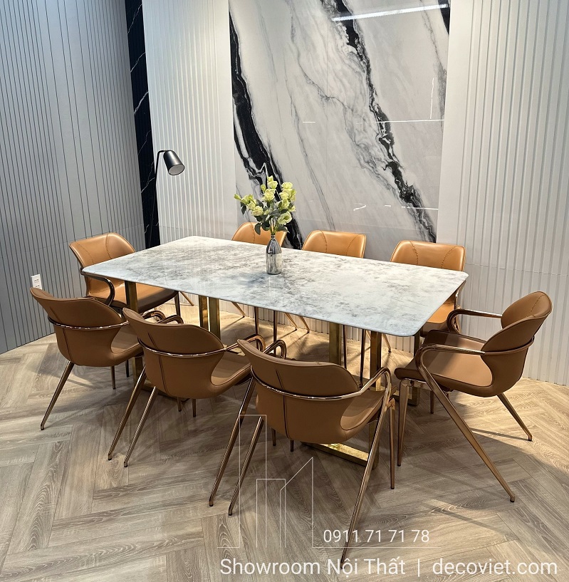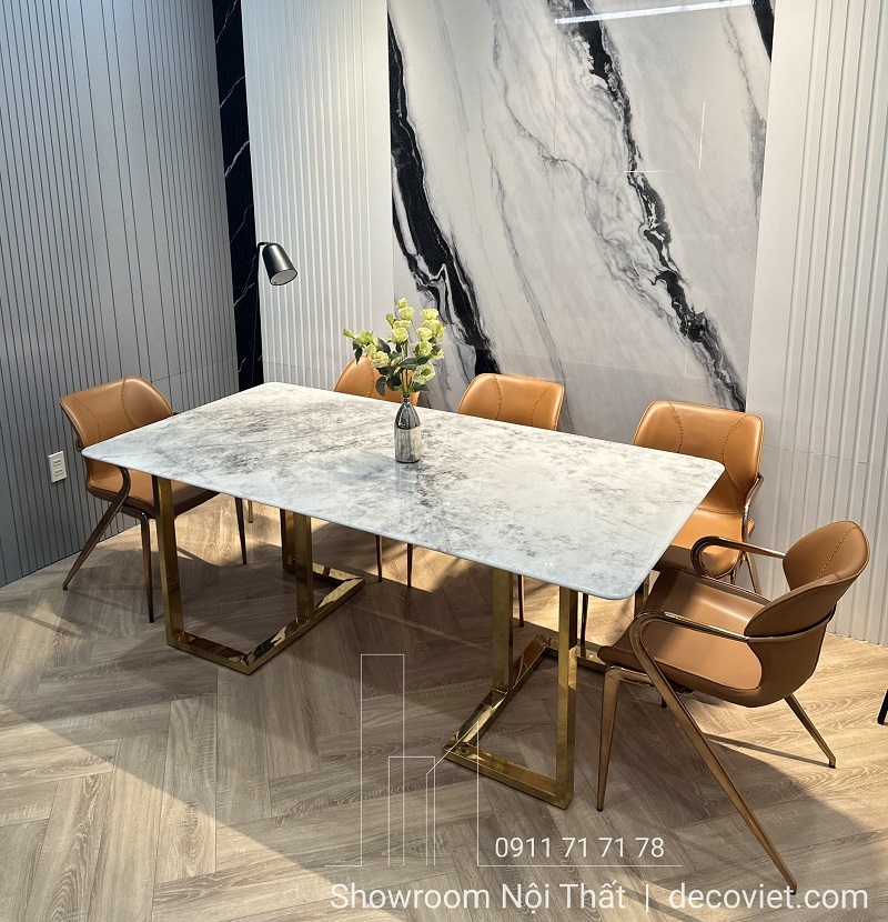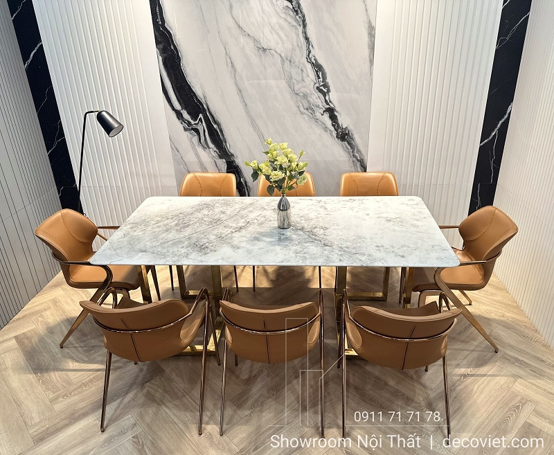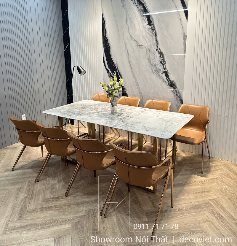 Bàn Ăn Chân Inox Mặt Đá 8 Ghế 2725S