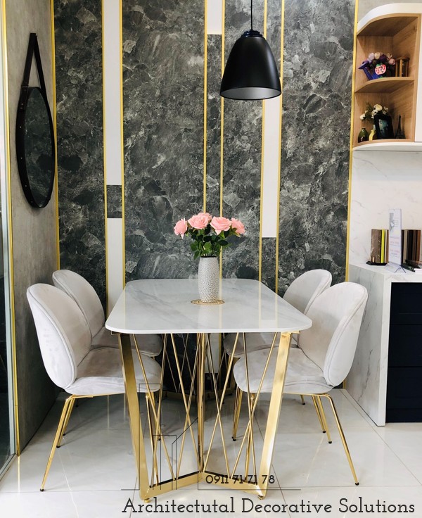 Chất Liệu : chân inox mạ vàng mặt đá trắng vân