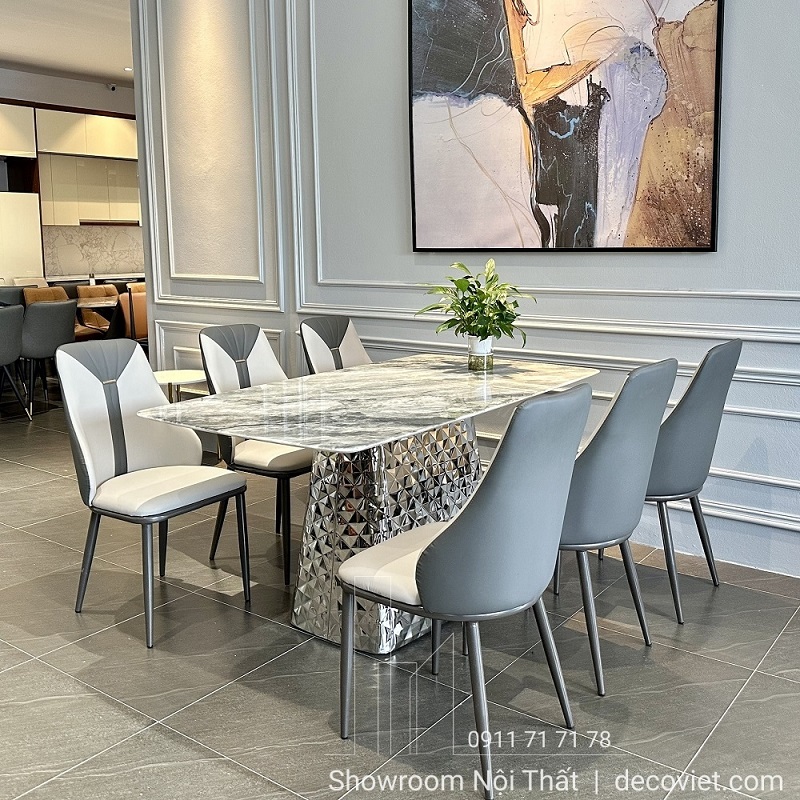 Các sản phẩm bàn ăn cao cấp không chỉ được tin tưởng bởi hình thức bắt mắt, lịch lãm mà còn được tin tưởng nhờ vào chất lượng nguyên vật liệu, linh kiện độc đáo, chế độ bảo hành đến từ thương hiệu nội thất cao cấp uy tín như DecoViet. Bàn Ăn 6 Ghế Cao Cấp 1077S với thiết kế lạ mắt, mẫu bàn ăn cao cấp này mang lại vẻ đẹp hiện đại, phá vỡ khuôn mẫu mang đến không gian sống xa hoa và đẳng cấp cho gia đình bạn.