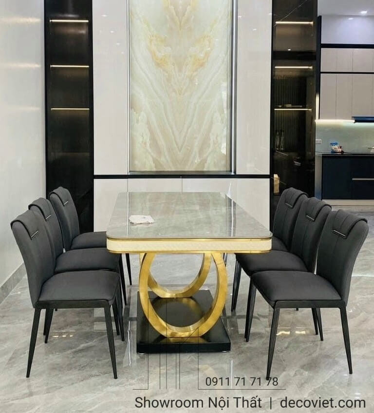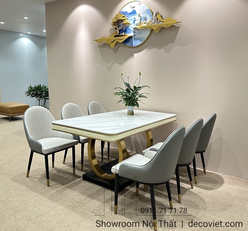 Mỗi bộ bàn ăn với thiết kế, chất liệu khác nhau sẽ mang đến vẻ đẹp khác biệt, độc đáo cho phòng bếp. Bộ bàn ăn 6 ghế mặt đá ceramic hiện đại tại DecoViet sẽ mang đến sự sang trọng và tinh tế cho không gian sống, đang là xu hướng được nhiều gia đình lựa chọn hiện nay. Bàn Ăn 6 Ghế Mặt Đá 1109S nằm trong bộ sưu tập bàn ăn mặt đá giá rẻ mới nhất tại DecoViet, được yêu thích bởi thiết kế dộc đáo, gây được sự ấn tượng và thu hút. Bộ bàn ăn đẹp mang lại giá trị thẩm mỹ cao cho không gian ăn uống cũng như có độ bền vượt trội từ những chất liệu cao cấp.