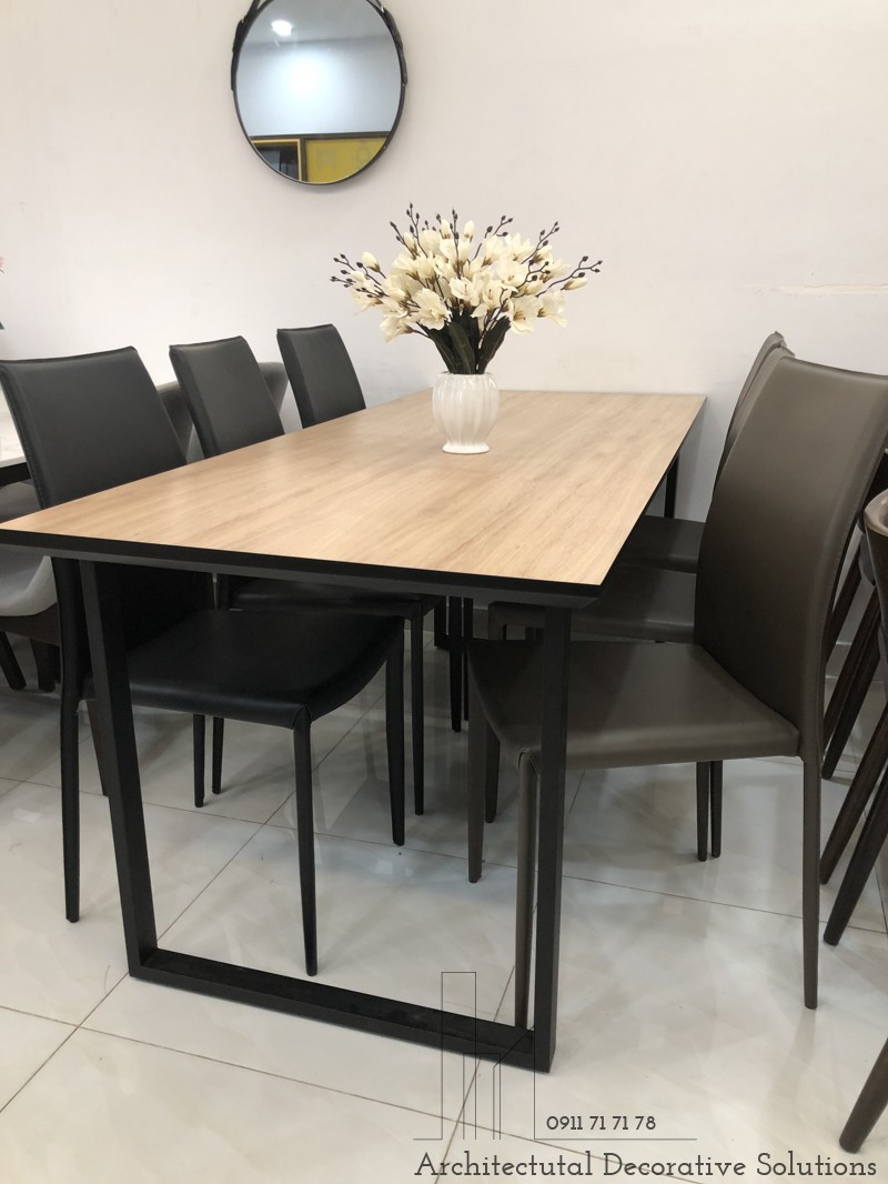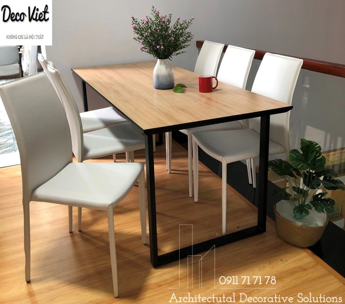 Chất Liệu : 6 ghế bọc da, mặt bàn gỗ mdf phủ laminate chân sắt sơn.