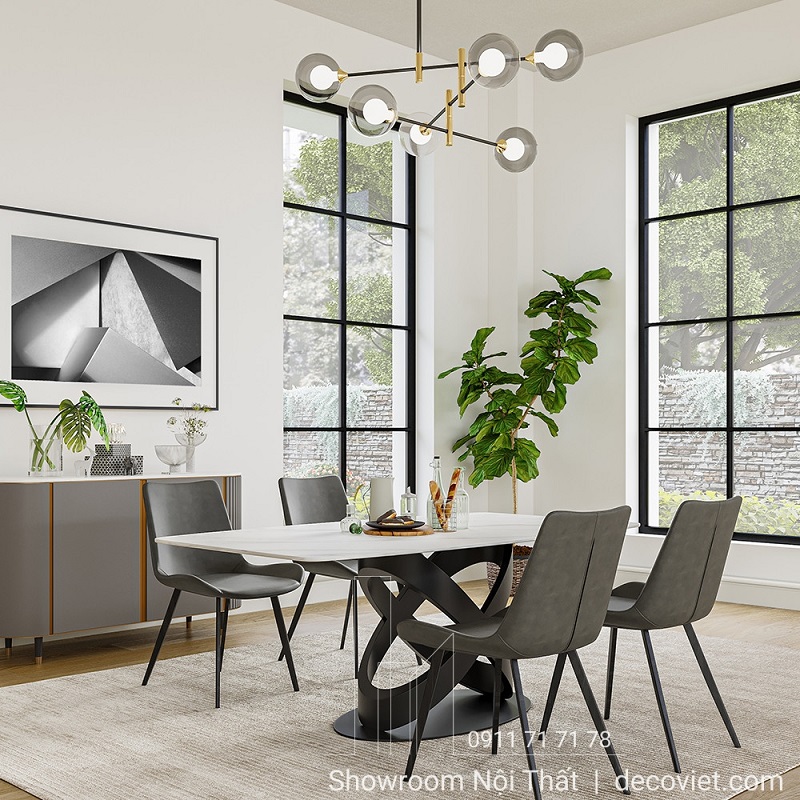 Các sản phẩm bàn ăn cao cấp không chỉ được tin tưởng bởi hình thức bắt mắt, lịch lãm mà còn được tin tưởng nhờ vào chất lượng nguyên vật liệu, linh kiện độc đáo, chế độ bảo hành đến từ thương hiệu nội thất cao cấp uy tín như DecoViet. Bàn Ăn Mặt Đá Hiện Đại 1063S với thiết kế lạ mắt, mẫu bàn ăn cao cấp này mang lại vẻ đẹp hiện đại, phá vỡ khuôn mẫu mang đến không gian sống xa hoa và đẳng cấp cho gia đình bạn.