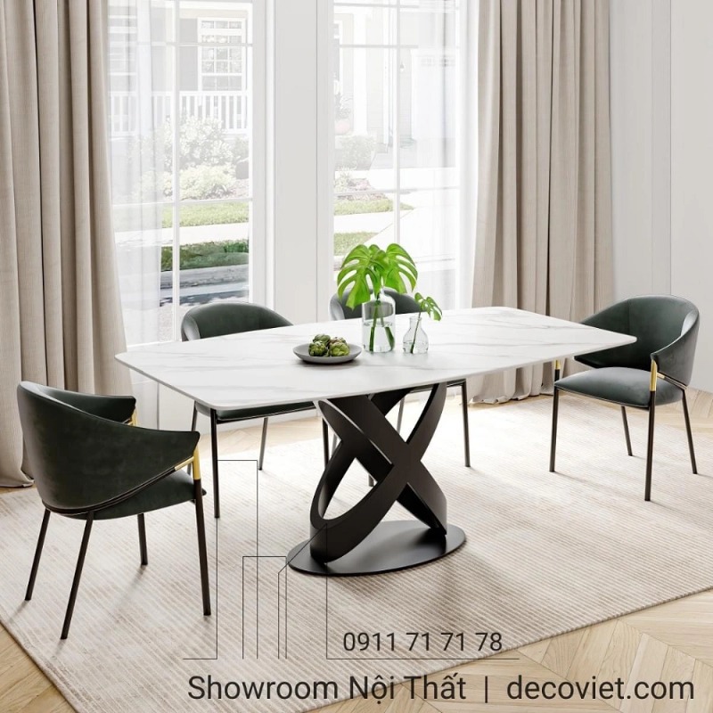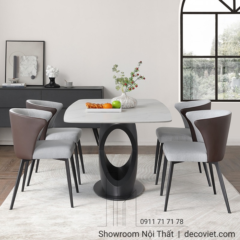 Nếu bạn mong muốn một bộ bàn ghế ăn theo phong cách hiện đại, dễ sử dụng, cứng cáp, bền chắc, tối giản nhưng phải có điểm nhấn, thì DecoViet tin rằng sản phẩm bàn ăn cao cấp dưới đây chính là sản phẩm mà quý khách đang tìm kiếm. Bàn ăn đá tại DecoViet có công năng sử dụng tiện nghi, thiết kế sang trọng, chất lượng cao và độ bền vượt trội. Đây là thiết kế được ưu chuộng và bán chạy nhất năm nay.