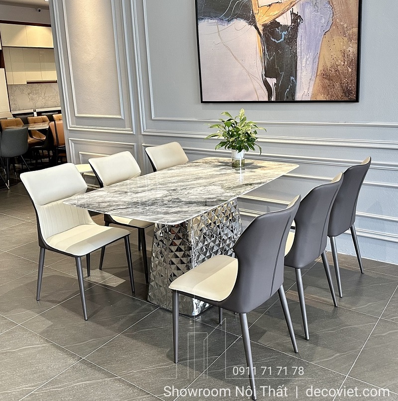 Các sản phẩm bàn ăn cao cấp không chỉ được tin tưởng bởi hình thức bắt mắt, lịch lãm mà còn được tin tưởng nhờ vào chất lượng nguyên vật liệu, linh kiện độc đáo, chế độ bảo hành đến từ thương hiệu nội thất cao cấp uy tín như DecoViet. Bộ Bàn Ăn Nhập Khẩu Cao Cấp 1078S với thiết kế lạ mắt, mẫu bàn ăn cao cấp này mang lại vẻ đẹp hiện đại, phá vỡ khuôn mẫu mang đến không gian sống xa hoa và đẳng cấp cho gia đình bạn.