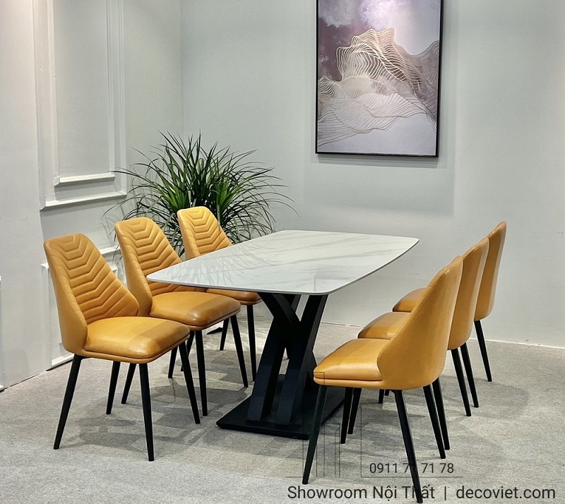 Các sản phẩm bàn ăn cao cấp không chỉ được tin tưởng bởi hình thức bắt mắt, lịch lãm mà còn được tin tưởng nhờ vào chất lượng nguyên vật liệu, linh kiện độc đáo, chế độ bảo hành đến từ thương hiệu nội thất cao cấp uy tín như DecoViet. Bộ Bàn Ghế Ăn Mặt Đá 1112S với thiết kế lạ mắt, mẫu bàn ăn cao cấp này mang lại vẻ đẹp hiện đại, phá vỡ khuôn mẫu mang đến không gian sống xa hoa và đẳng cấp cho gia đình bạn.