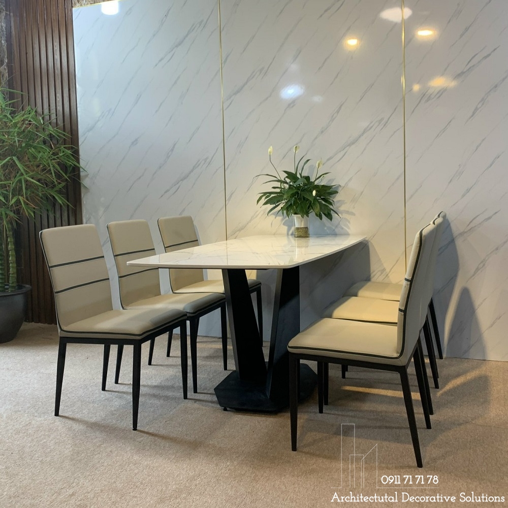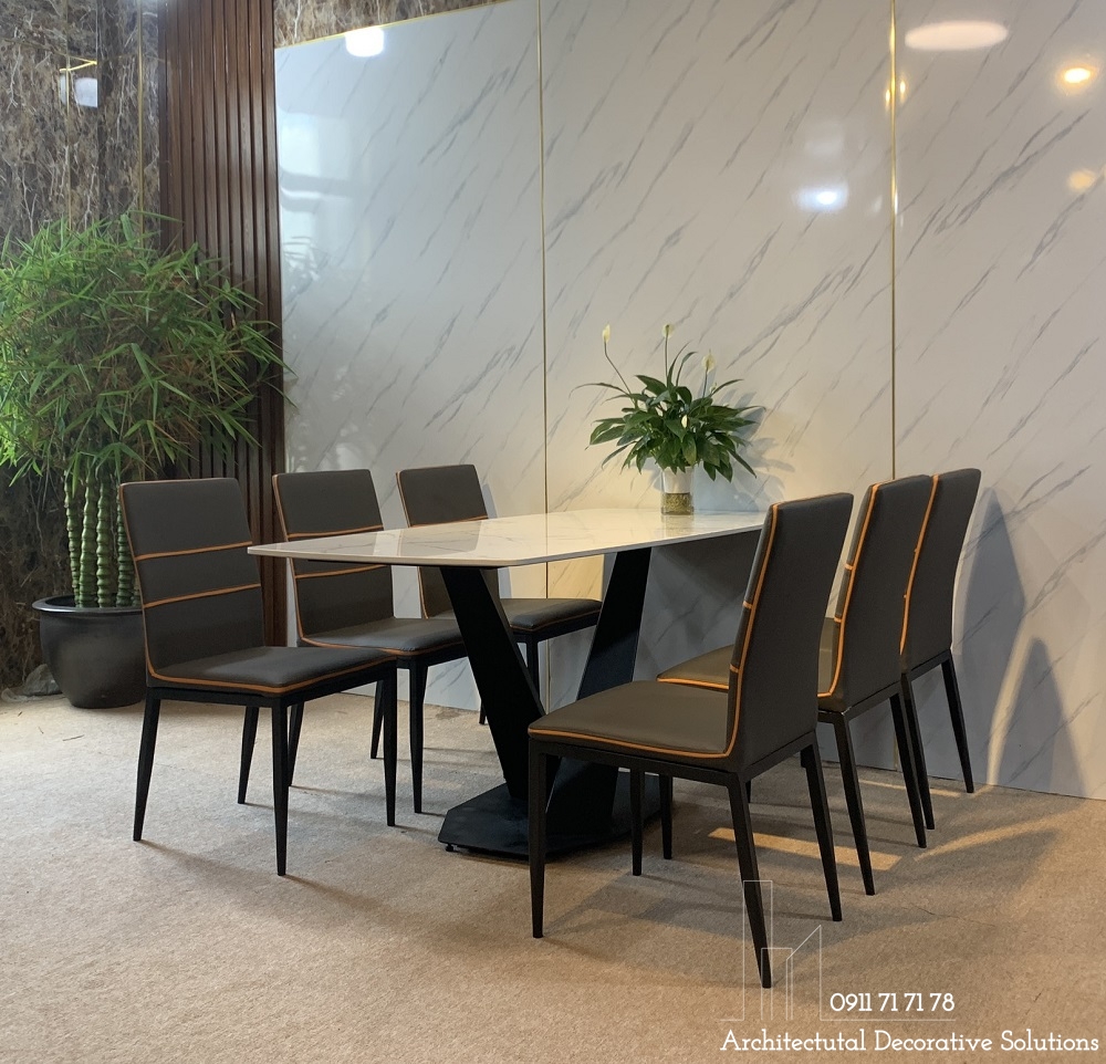 Nếu bạn mong muốn một bộ bàn ghế ăn theo phong cách hiện đại, dễ sử dụng, cứng cáp, bền chắc, tối giản nhưng phải có điểm nhấn, thì DecoViet tin rằng Bàn Ăn 6 Ghế Cao Cấp 694S chính là sản phẩm mà quý khách đang tìm kiếm. Đây là thiết kế được ưu chuộng và bán chạy nhất năm nay, cũng là một trong những sản phẩm luôn nhận được phản hồi tốt nhất của khách hàng sau khi sử dụng. Bộ bàn ăn với chân sắt, mặt đá nhập khẩu và 6 ghế nệm cao cấp chắc chắn sẽ làm quý khách hài lòng.