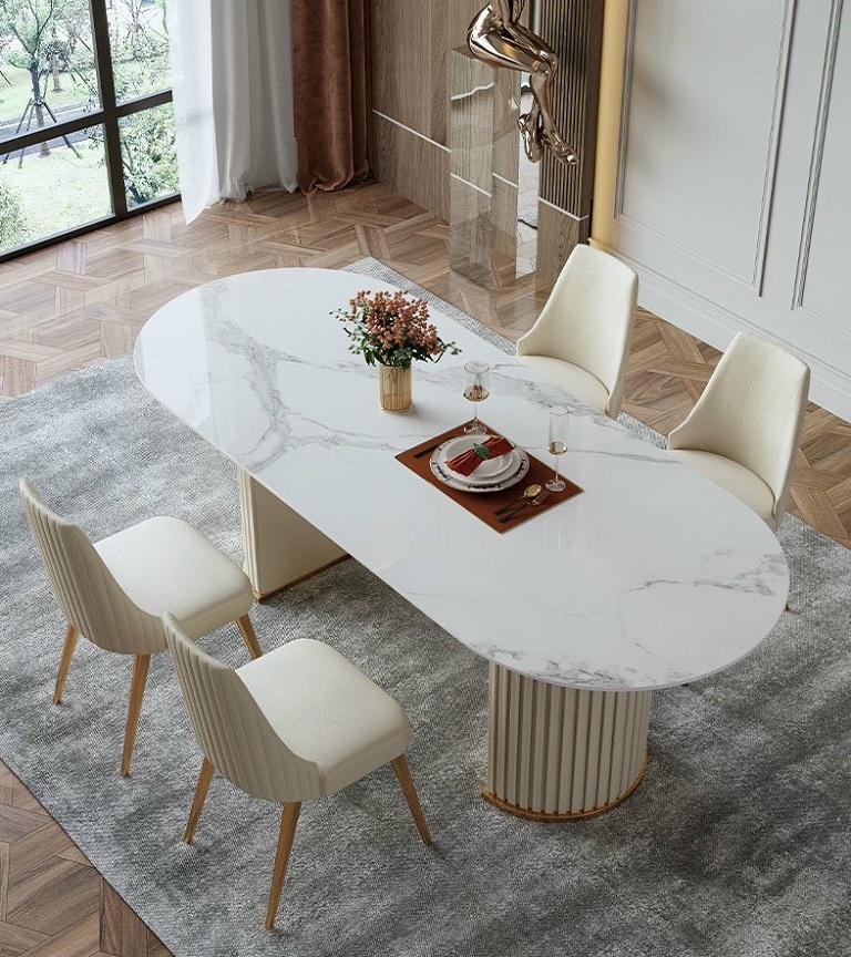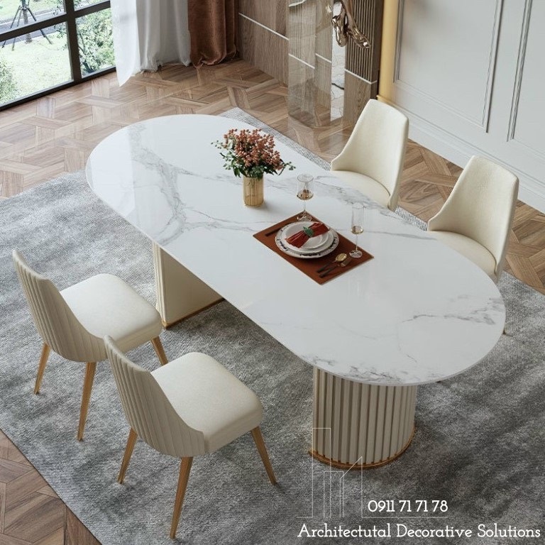 Chất Liệu: Chân gỗ mặt đá trắng sứ Ý vân mây.