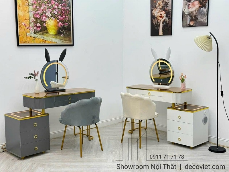 Bàn trang điểm giá rẻ, hiện đại tại DecoViet với nhiều kiểu dáng màu sắc phong phú với thiết kế độc đáo và ấn tượng, giúp bạn có nhiều ý tưởng hơn trong trang trí nội thất phòng ngủ. Liên hệ ngay với DecoViet để được tư vấn và trải nghiệm trực tiếp sản phẩm Bàn Trang Điểm Thông Minh 123S ngay hôm nay nhé!