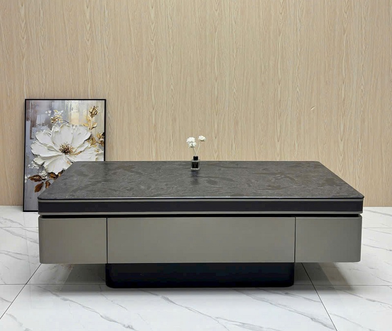 Không chỉ chú trọng đến tính thẩm mỹ, mẫu bàn sofa mặt đá còn được thiết kế thông minh với ngăn kéo rộng rãi, giúp gia chủ dễ dàng sắp xếp, lưu trữ các vật dụng cần thiết. Điều này mang lại sự gọn gàng, tinh tế cho không gian sống, đồng thời nâng cao giá trị sử dụng trong đời sống hàng ngày.