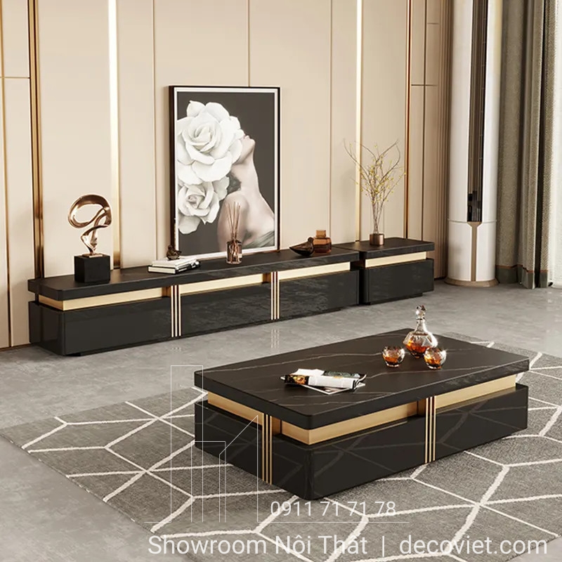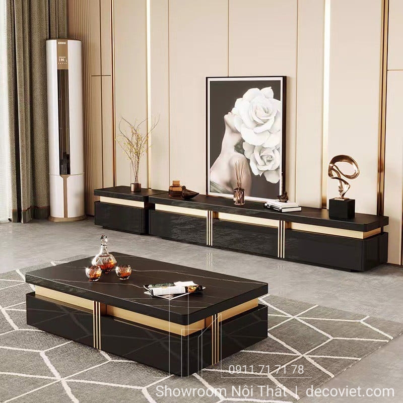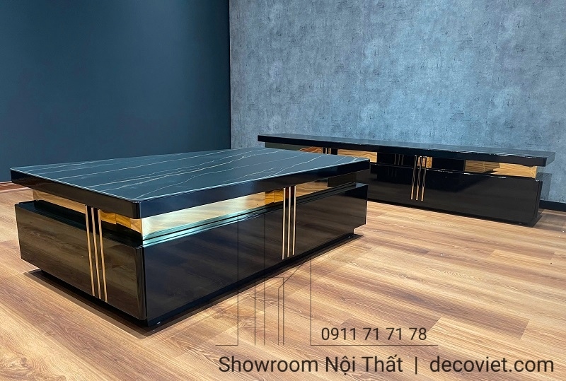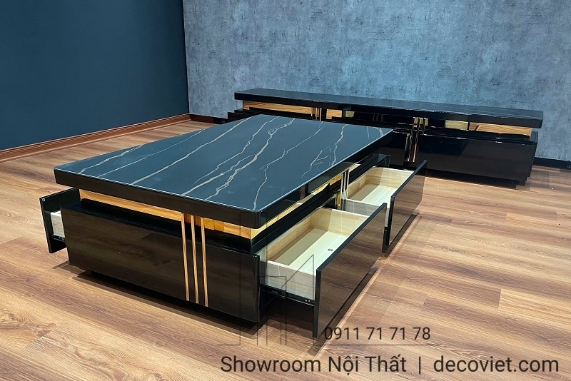 Mẫu bàn sofa cao cấp được bố trí ngắn kéo rất thuận tiện để trà, hoa quả, bánh kẹo khi tiếp khách. Và đặc biệt mẫu bàn này còn đi kèm với thiết kế kệ tivi đồng bộ, giúp phòng khách nhà bạn có sự gọn gàng và sang trọng hơn.