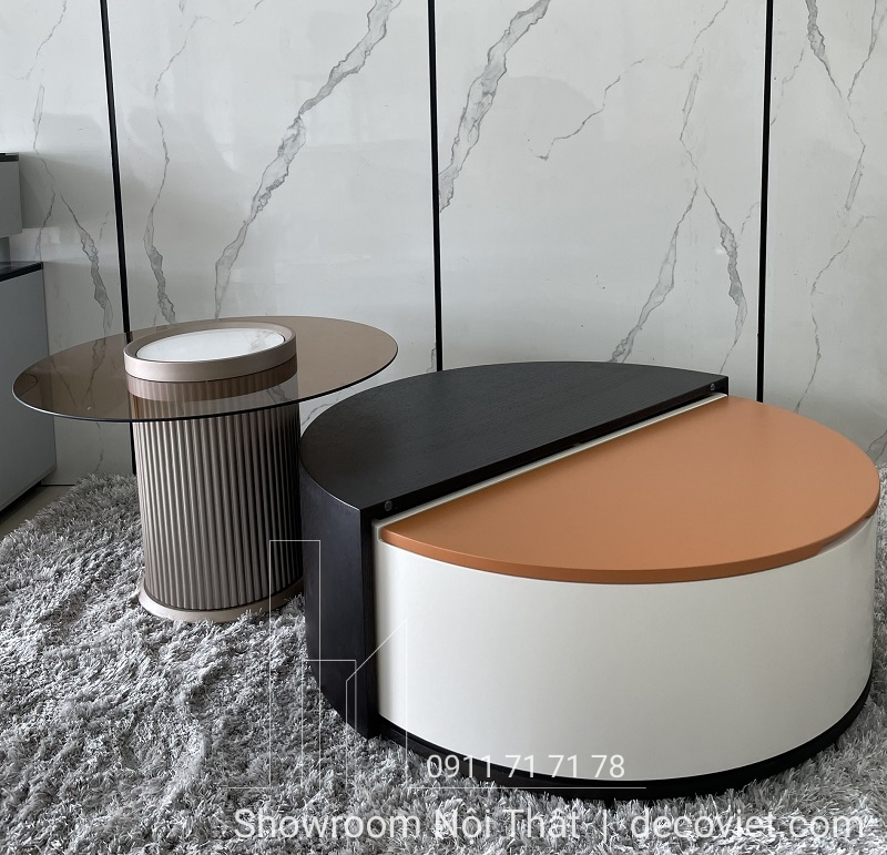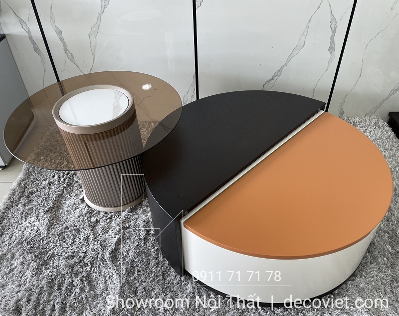 Sự thu hút mạnh mẽ của mẫu bàn trà sofa đẹp này đó là kiểu dáng thiết kế mới lạ, độc đáo giúp mang đến không gian ấn tượng. Sự đột phá trong thiết kế của mẫu bàn sofa nhập khẩu tạo nên sức hút mạnh mẽ ngay từ ánh nhìn đầu tiên với đa số khách hàng. Mẫu bàn trà sofa thiết kế xoay tiện lợi tích hợp hộc lưu trữ vô cùng thẩm mỹ, màu sắc tương phản giữa màu cam, đen, trắng làm nổi bật phòng khách nhà bạn.