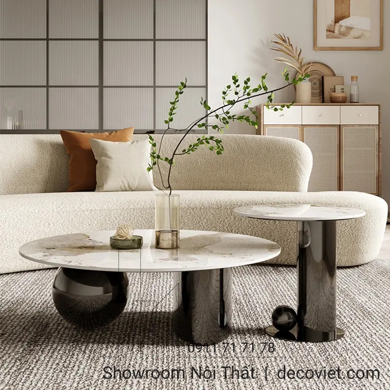 Một phòng khách hiện đại với mẫu bàn trà mặt đá đẹp mắt sẽ làm nổi bật lên đẳng cấp của chủ nhà. Không chỉ đóng vai trò là nơi để tiếp khách, mà chiếc bàn trà sofa đẹp còn giúp không gian phòng khách thêm tinh tế hơn. Sở hữu một cặp Bàn Trà Mặt Đá Nhập Khẩu 196S với thiết kế thời thượng, mặt đá sang trọng, đẳng cấp kèm theo đó chân inox sáng bóng bền đẹp với thời gian, sẽ là lựa chọn vô cùng hoàn hảo cho không gian nhà bạn.