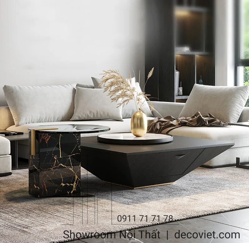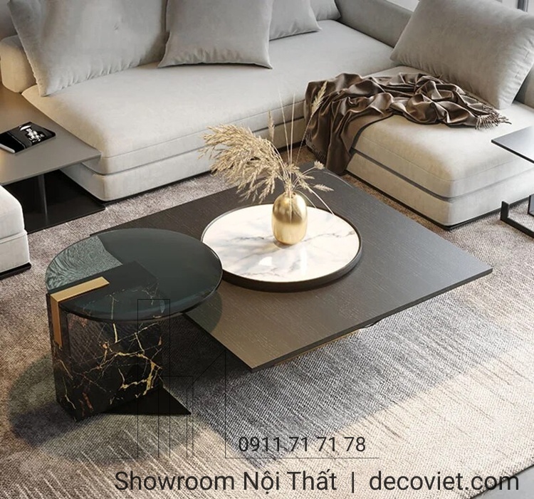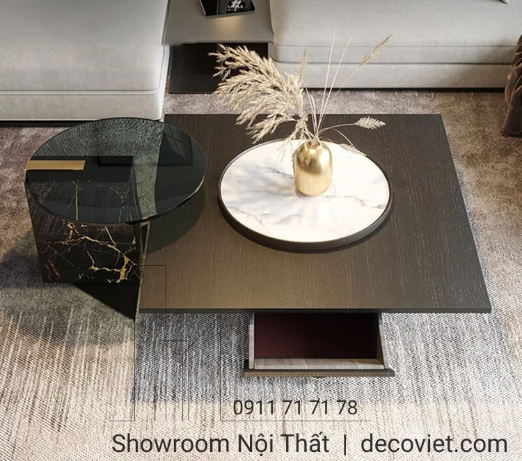 Mẫu bàn trà sofa phòng khách đẹp tại nội thất DecoViet không chỉ có thiết kế hiện đại mà còn là sự kết hợp độc đáo giữa các chất liệu cao cấp như gỗ, kính, đá,... tạo nên vẻ đẹp thanh lịch, sang trọng và đẳng cấp cho không gian đặt chúng. Bàn Sofa Cao Cấp 222S với thiết kế phá cách ấn tượng, tạo nên vẻ đẹp khác biệt cho phòng khách nhà bạn và khi kết hợp với ghế sofa hay những nội thất xung quanh đều trở nên hài hòa và bắt mắt.
