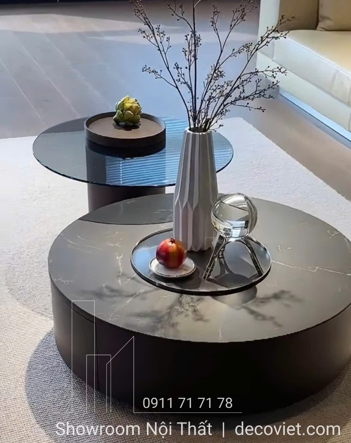 Set bàn trà sofa tròn với thiết kế tinh tế và hiện đại, không chỉ là món đồ nội thất mà còn là tâm điểm của mọi không gian phòng khách. Hình dáng tròn mềm mại của Bàn Sofa Hiện Đại 352S sẽ tạo nên sự hòa hợp và gần gũi, khuyến khích mọi người xích lại gần nhau, chia sẻ những câu chuyện và tiếng cười. Chất liệu bàn gỗ kết hợp mặt đá + kính mang đến cảm giác sang trọng và ấm áp, cũng sự nhẹ nhàng và thanh thoát cho không gian thư giãn. Dù là khi đón tiếp khách hay những phút giây nghỉ ngơi bên gia đình, bàn sofa đôi tròn hiện đại luôn là lựa chọn lý tưởng, góp phần làm cho không gian phòng khách thêm phần sinh động và ấm cúng hơn.