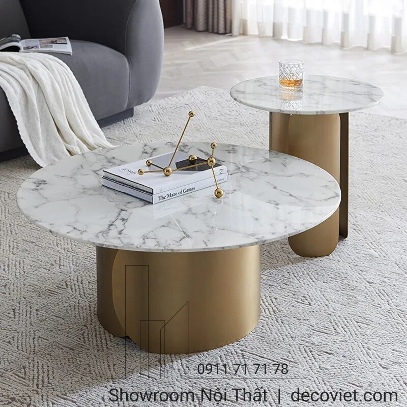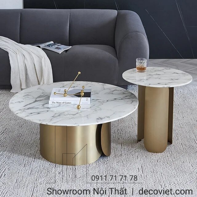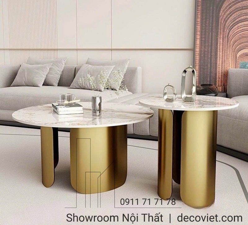 Việc lựa chọn bàn trà sofa sao cho vừa tinh tế, vừa tiện nghi lại hài hòa với ghế sofa cũng như tổng thể phòng khách là một việc luôn làm cho bất kì ai cũng phải đau đầu. Thấu hiểu được mong muốn của quý khách, Nội thất DecoViet xin giới thiệu đến bạn mẫu Bàn Sofa Mặt Đá Nhập Khẩu 255S cao cấp. Set bàn trà đẹp là sự kết hợp giữa chân inox và mặt đá sang trọng, tạo nên một sản phẩm nội thất phòng khách không chỉ đáp ứng công năng sử dụng, mà còn là tác phẩm nghệ thuật, làm cho không gian trở nên sang trọng và đẳng cấp hơn.