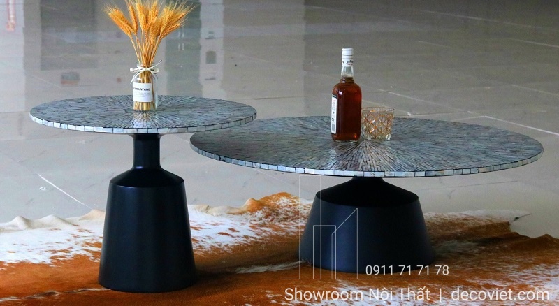 Chất liệu bàn mặt khảm trai tự nhiên cao cấp, mặt bàn được làm từ cốt gỗ công nghiệp chống ẩm, chống thấm nước. Sự kết hợp của bàn trà khảm trai hiện đại với ghế sofa phòng khách chắc chắn sẽ tạo nên một một điểm nhấn hoàn toàn nổi bật.