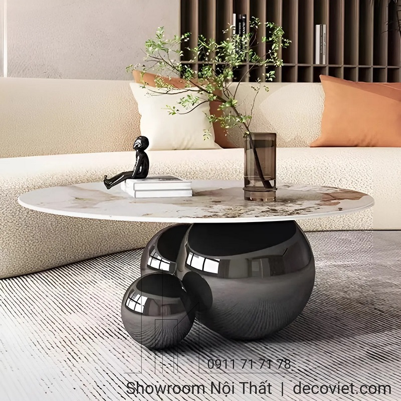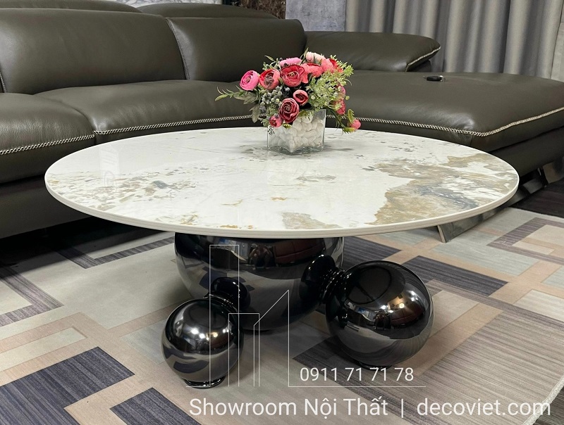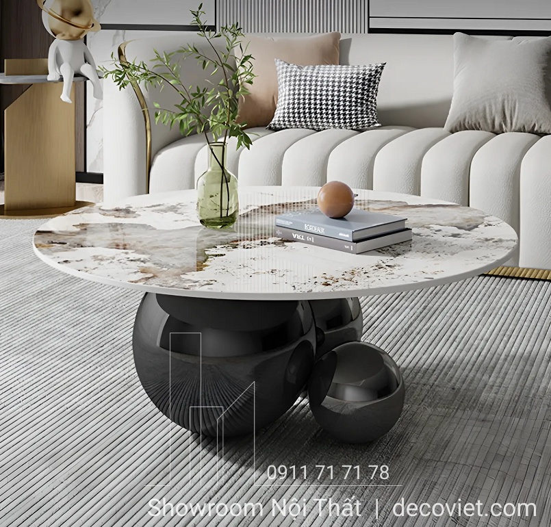 Đây là mẫu bàn trà tròn mặt đá nhập khẩu cho phòng khách với kiểu dáng hot nhất thị trường. Chất liệu mặt đá ceramic chống trầy cực tốt, chống ố và chống thấm, khả năng chịu nhiệt tốt và dễ dàng vệ sinh làm sạch. Thiết kế bàn sofa tròn mặt đá này còn giúp tối ưu hóa diện tích sử dụng và tạo nên không gian tiếp khách thanh lịch và tiện nghi hơn.
