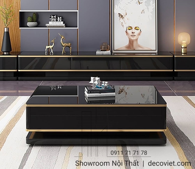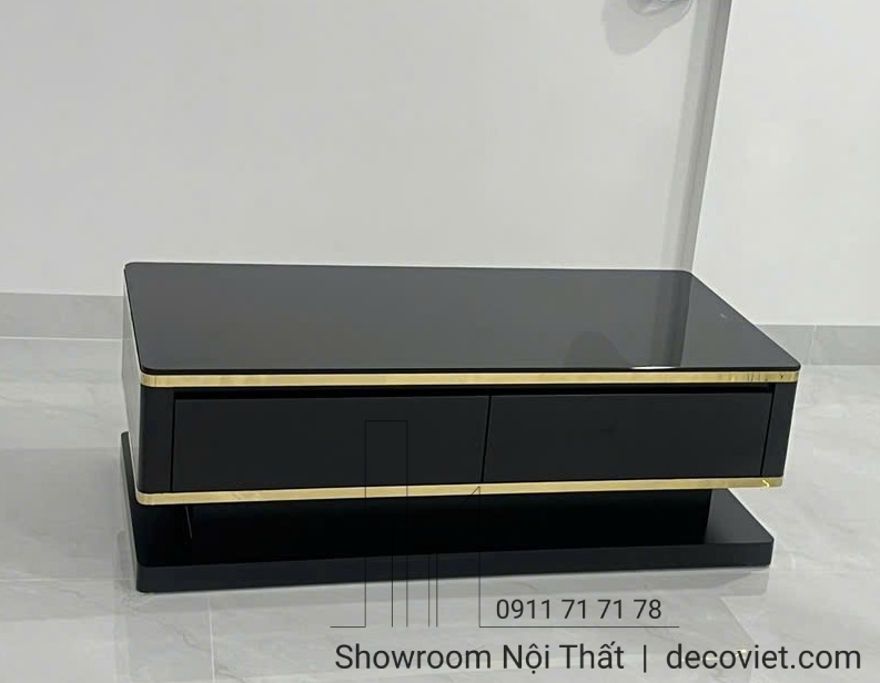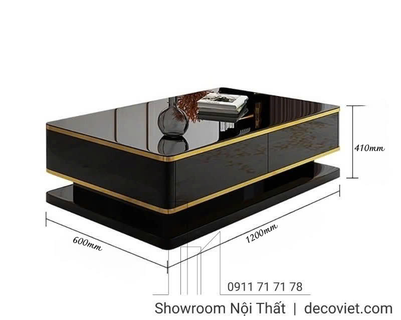Thiết kế bàn trà mặt kính với kiểu dáng hình chữ nhật truyền thống nhưng lại được cách tân bằng kiểu dáng độc đáo, tone màu đen sang trọng, ấm cúng cho mọi không gian phòng khách. Mặt bàn kính cao cấp hạn chế trầy xước, bàn gỗ công nghiệp bền đẹp càng làm tôn lên vẻ đẹp đẳng cấp cho sản phẩm.