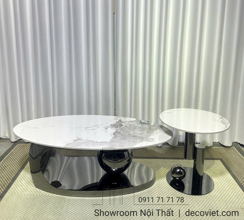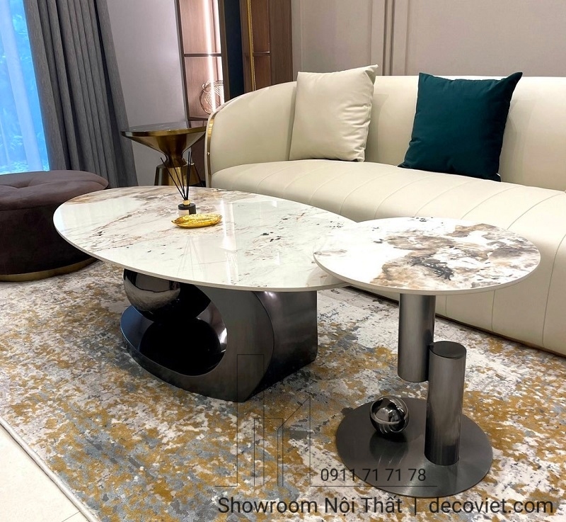 Bàn Trà Nhập Khẩu 349S là mẫu bàn trà đôi mặt đá với thiết kế hiện đại cho phòng khách, hot nhất thị trường. Chất liệu mặt đá ceramic chống trầy cực tốt, ngoài khả khả năng chống ố và chống thấm hiệu quả và giúp bạn dễ dàng vệ sinh làm sạch. Thiết kế bàn sofa mặt đá hình oval còn giúp tối ưu hóa diện tích sử dụng và tạo nên một làn gió mới không gian tiếp khách thêm đẹp mắt và tiện nghi.