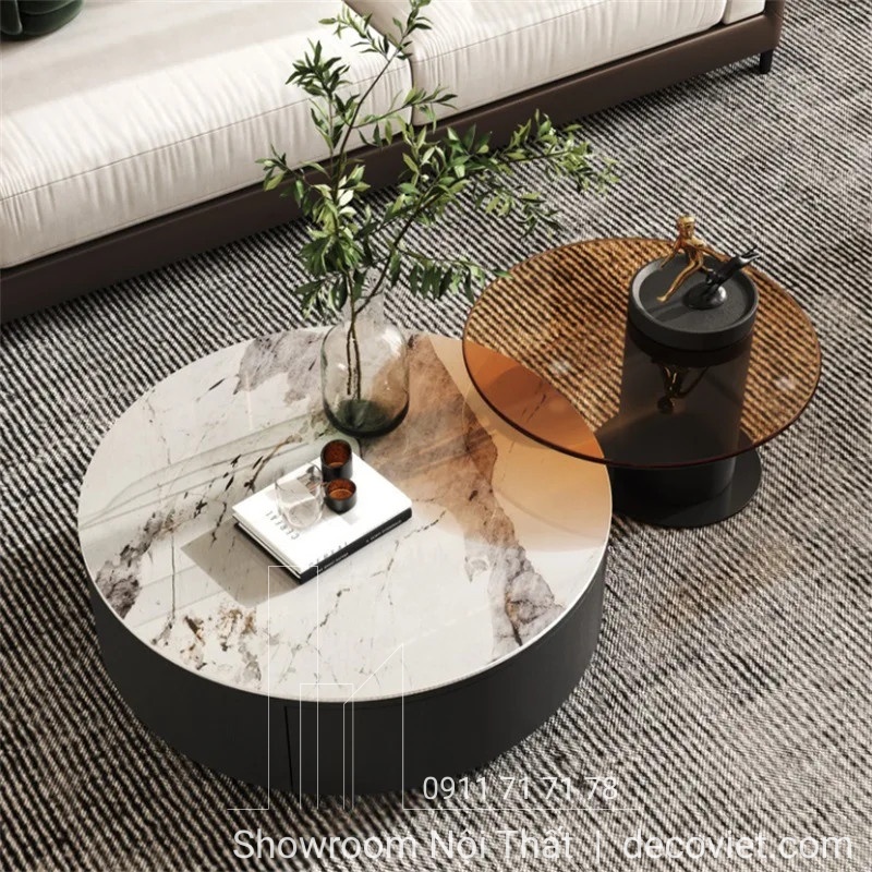 Việc lựa chọn bàn trà sao cho vừa tinh tế, vừa tiện nghi lại hài hòa với ghế sofa cũng như tổng thể phòng khách là một việc luôn làm cho bất kì ai cũng phải đau đầu. Thấu hiểu được mong muốn của quý khách, Nội thất DecoViet xin giới thiệu đến bạn mẫu Bàn Trà Phòng Khách 238S cao cấp. Set bàn trà đẹp là sự kết hợp giữa mặt đá và mặt kính sang trọng, tạo nên một sản phẩm nội thất phòng khách không chỉ đáp ứng công năng sử dụng, mà còn là tác phẩm nghệ thuật, làm cho không gian trở nên sang trọng và đẳng cấp hơn.