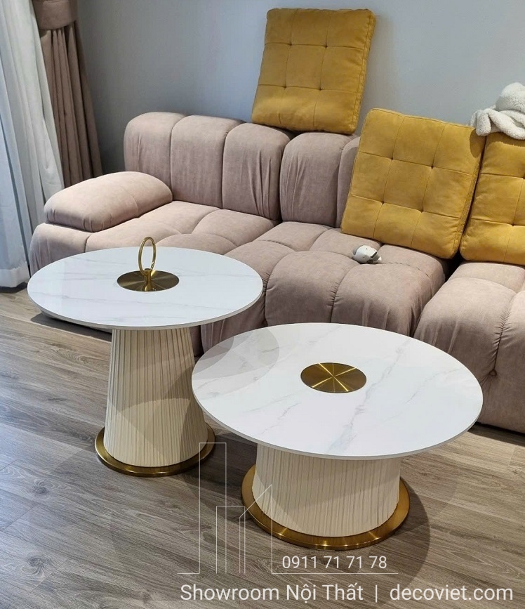 Sức hút mạnh mẽ của mẫu bàn trà đẹp này đó là kiểu dáng thiết kế 2 bàn trà đôi đặt cạnh nhau tinh tế, hiện đại giúp mang đến không gian sống ấn tượng. Bàn sofa mặt đá còn có thể dễ dàng kết hợp với nhiều mẫu ghế sofa khác nhau, những đường vân tinh tế trên mặt đá cũng tạo thêm sự cuốn hút cho căn phòng. Thiết kế bàn trà đôi sang trọng không chỉ mang lại sự tiện nghi mà còn tạo nên một sự cân đối và hài hòa trong không gian phòng khách của bạn.