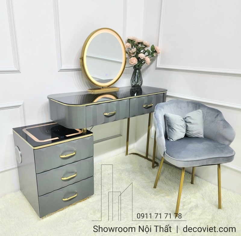 Căn phòng của bạn không thể gọi là đầy đủ nếu thiếu đi chiếc bàn trang điểm. Bạn sẽ thấy khi sử dụng bàn trang điểm đem lại cho không gian bớt trống vắng mà còn làm cho phòng ngủ của bạn sang trọng, tinh tế và hoàn thiện hơn. Chúng tôi có rất nhiều mẫu bàn trang điểm với những kích thước, mẫu mã phù hợp cho không gian của bạn với nhiều mẫu bàn trang điểm chất lượng được chúng tôi thiết kế khác nhau phù hợp cho nhu cầu sử dụng của từng khách hàng.