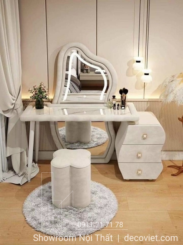 Bàn trang điểm với nhiều mẫu mã, đa dạng về kiểu dáng, phong phú về chất liệu. Các mẫu bàn trang điểm không ngừng được cập nhật với nhiều phong cách cho khách hàng nhiều sự lựa chọn. Với mong muốn đem lại cho khách hàng những sản phẩm chất lượng với giá tốt nhất, các chương trình khuyến mãi của DecoViet luôn mang đến cho khách hàng nhiều món quà hấp dẫn, diễn ra liên tục trong suốt thời gian dài.