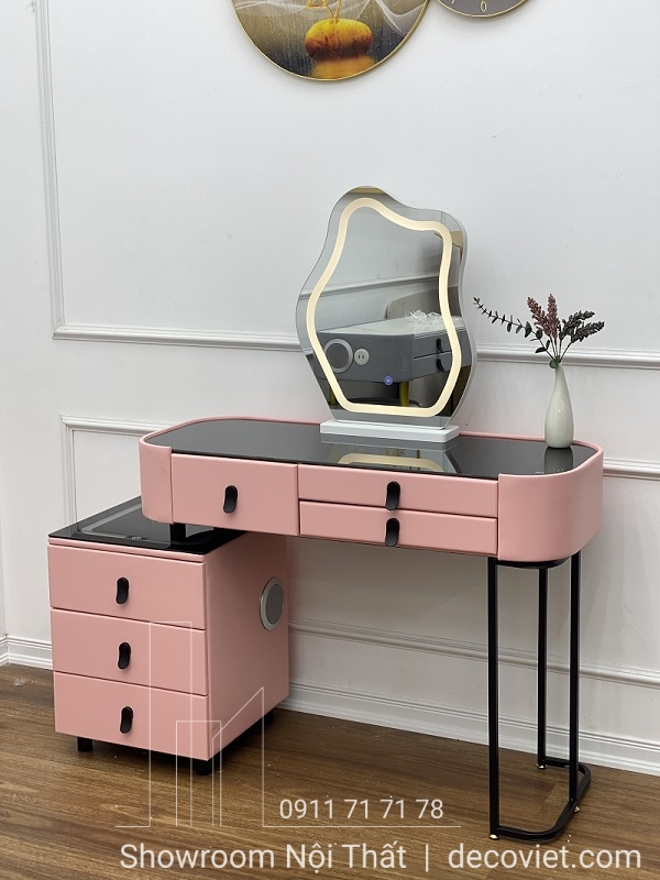 Bàn trang điểm, bàn phấn chắc chắn là món đồ nội thất không thể thiếu trong phòng ngủ của các chị em. Bàn trang điểm đẹp là nơi trang điểm và cất giữ các loại mỹ phẩm quan trọng, giúp nàng xinh đẹp hơn mỗi khi bước ra khỏi nhà. Tại nội thất DecoViet chúng tôi mang đến cho khách hàng rất nhiều mẫu bàn trang điểm giá rẻ, bàn trang điểm gỗ, bàn trang điểm nhập khẩu điển hình là mẫu Bàn Trang Điểm Thông Minh 66S dưới đây. Mẫu bàn trang điểm gỗ công nghiệp với thiết kế độc đáo và ấn tượng, chất lượng cao với mức giá ưu đãi nhất TPHCM dành cho bạn!
