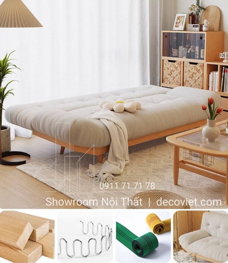 - Khung sườn: Gỗ tự nhiên đã qua xử lý chống cong vênh, mối mọt.
