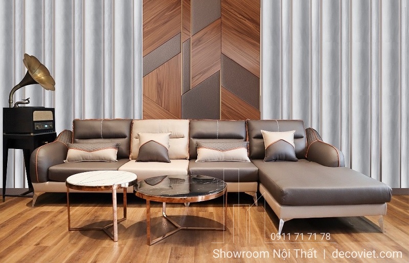 Mặc dù có thiết kế đơn giản, những mẫu ghế sofa góc phòng khách tại DecoViet vẫn thể hiện được sự sang trọng và nét thanh lịch vốn có. Bên cạnh đó bộ ghế sofa phòng khách này còn giúp cho không gian nội thất của bạn trở nên gọn gàng, ngăn nắp hơn. Đồng thời chủ nhà cũng dễ dàng kết hợp với những món nội thất khác nhau.