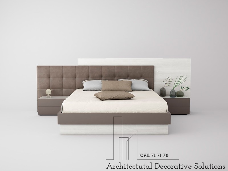 Trong phòng ngủ thì bộ giường ngủ là sản phẩm nội thất không thể thiếu, giường ngủ là nơi ngủ, nghỉ ngơi, nó giúp giữ sức khỏe cho bạn, và hơn nữa trong thiết kế trang trí nội thất thì giường ngủ chính là thành phần vô cùng quan trọng ảnh hưởng trực tiếp đến thiết kế và vẻ đẹp của toàn bộ không gian. DecoViet chuyên sản xuất giường ngủ gỗ công nghiệp và giường ngủ gỗ tự nhiên các loại theo yêu cầu. Là nhà xưởng sản xuất trực tiếp cung cấp sản phẩm đến khách hàng nên giá thành giường ngủ của DecoViet đảm bảo luôn tốt nhất thị trường. DecoViet xin giới thiệu đến quý khách mẫu sản phẩm Giường Ngủ Gỗ 1175T đẹp giá rẻ.