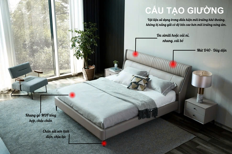 Chất liệu: Gỗ MDF, bọc da cao cấp.