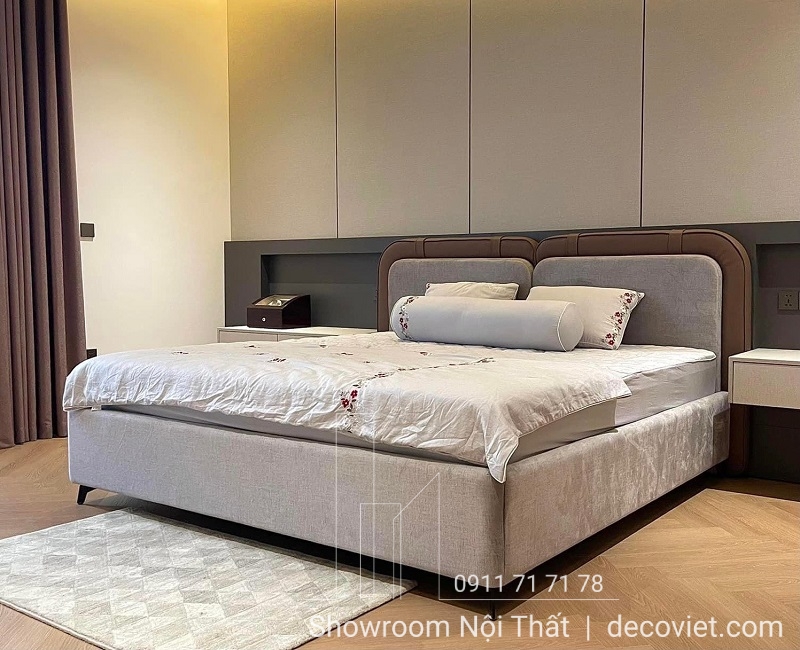 Nhằm bắt kịp xu hướng nội thất hiện đại, dòng sản phẩm giường bọc nệm, giường bọc vải đã và đang được cải tiến về chất liệu, kiểu dáng, giúp giấc ngủ thêm ngon hơn. Ngoài ra, lựa chọn được mẫu giường ngủ đẹp cũng góp phần trang trí không gian nghỉ ngơi thêm sang trọng và hoàn hảo. Mẫu Giường Ngủ Cao Cấp 54T là sản phẩm được đông đảo quý khách hàng yêu thích tại DecoViet. Nhờ vào thiết kế thời thượng, chất liệu cao cấp và êm ái, giúp bạn có những phút giây thư giãn tuyệt vời sau ngày làm việc mệt mỏi.