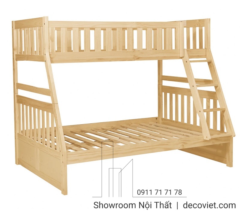 Với thiết kế mới nhất theo phong cách hiện đại, cùng những tiêu chuẩn xuất khẩu châu Âu về chất lượng và kích thước, mẫu giường tầng gỗ này không những giúp căn phòng của bé hiện đại hơn, sang trọng hơn mà còn tiết kiệm rất nhiều diện tích.