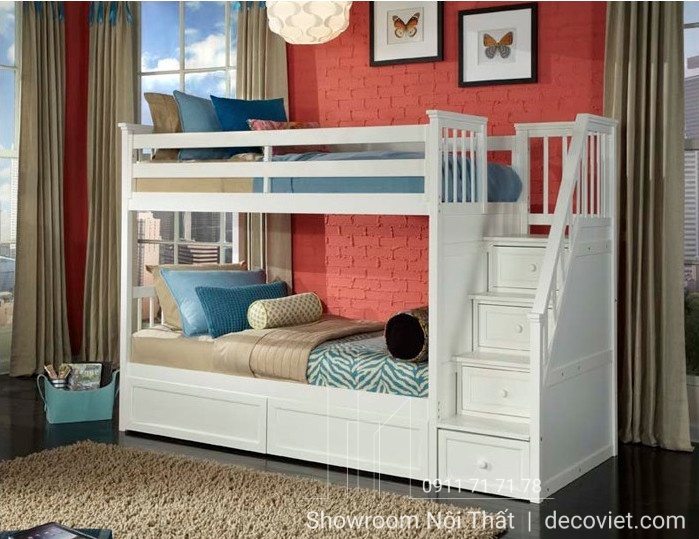 Giường tầng cho bé là một sản phẩm rất được nhiều bậc phụ huynh yêu thích và tin dùng. Bởi nó tạo ra một không gian học tập và nghỉ ngơi đảm bảo an toàn, thoải mái và tiện lợi cho trẻ. Mời bạn cùng Nội thất DecoViet tìm hiểu một số đặc điểm nổi bật mà mẫu Giường 2 Tầng Người Lớn 5T - Trắng mang đến!