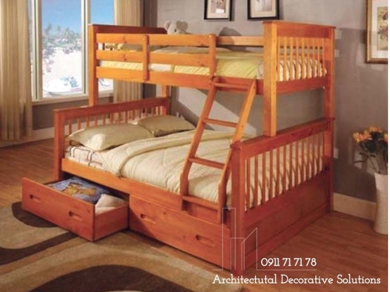 Giường Tầng 411S được thiết kế đẹp với các họa tiết trang trí. Thiết kế tối ưu để tiết kiệm diện tích phòng ngủ, sử dụng cho cả trẻ em và người lớn. Ưu điểm lớn của loại giường này là rộng rãi, dùng cho 2-3 người cả trẻ em và người lớn với 2 giường, tầng trên rộng 1m4, tầng dưới rộng 1m. Phía dưới tầng 1 là các hộc kéo dùng để chứa đồ, cầu thang chắc chắn.