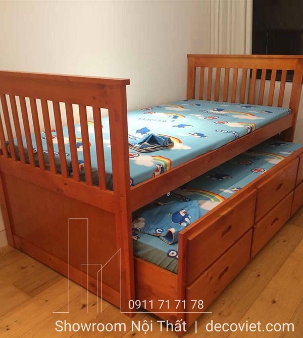 Giường 2 tầng cho bé được sản xuất bằng gỗ thông được nhập khẩu 100% từ New Zealand đã qua xử lý chống cong vênh, mối mọt và chống hút ẩm. Đặc biệt, giường 2 tầng có tầng dưới được trang bị như 1 hộc kéo tiện lợi, bạn có thể thu vào gọn thành 1 giường đơn khi không sử dụng.