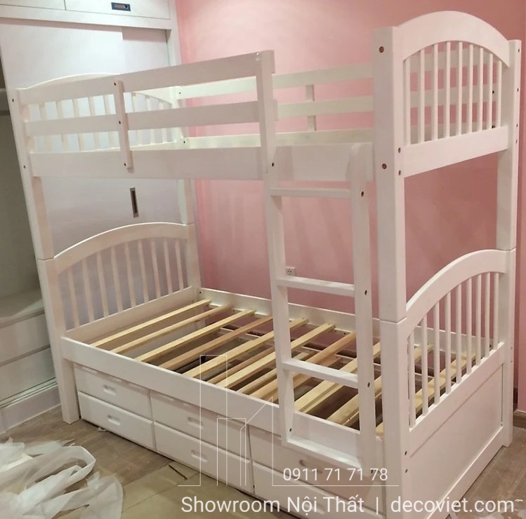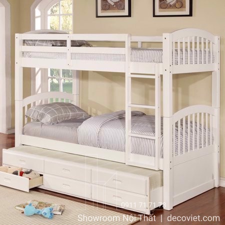 Giường tầng đang là một sản phẩm được nhiều gia đình yêu thích bởi sự tiện ích, thông minh và thẩm mỹ. Các mẫu giường tầng cho bé tại DecoViet luôn đảm bảo độ bền chắc cũng như tạo được không gian sống nhỏ gọn và khoa học. Mẫu Giường Tầng Thông Minh 408T – Trắng với thiết kế tinh tế, ấn tượng và đẹp mắt, chất liệu gỗ thông bền đẹp cùng tiêu chuẩn xuất khẩu châu Âu. Mẫu giường tầng giá rẻ này còn được tích hợp nhiều ngăn kéo lưu trữ, giúp tăng thêm không gian lưu trữ đồ đạc, tăng tính thẩm mỹ cho không gian căn phòng.